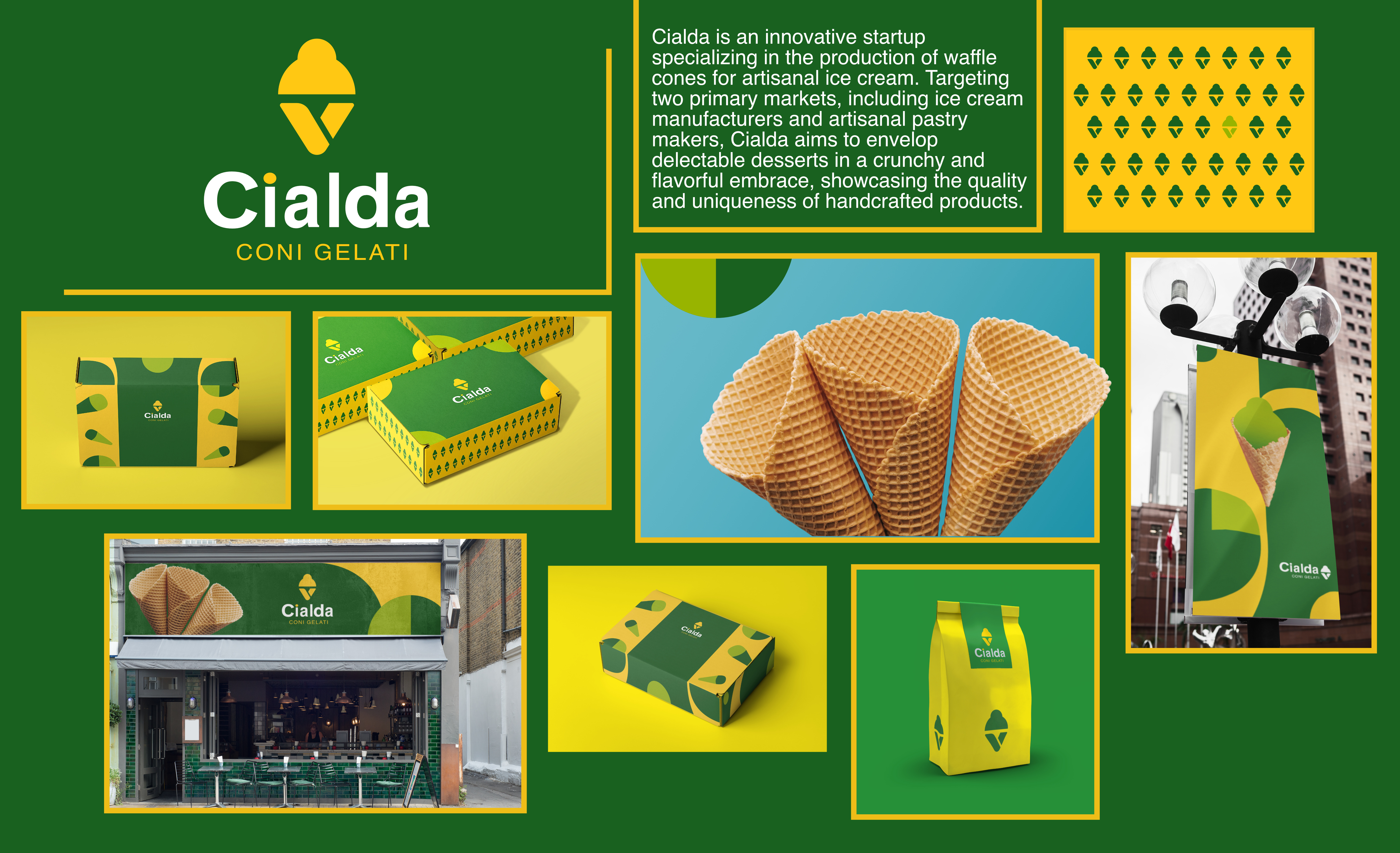 “Cialda - Coni Gelati” is an innovative startup specializing in the production of waffle cones for artisanal ice cream. Targeting two primary markets, including ice cream manufacturers and artisanal pastry makers, Cialda aims to envelop delectable desserts in a crunchy and flavorful embrace, showcasing the quality and uniqueness handcrafted products.