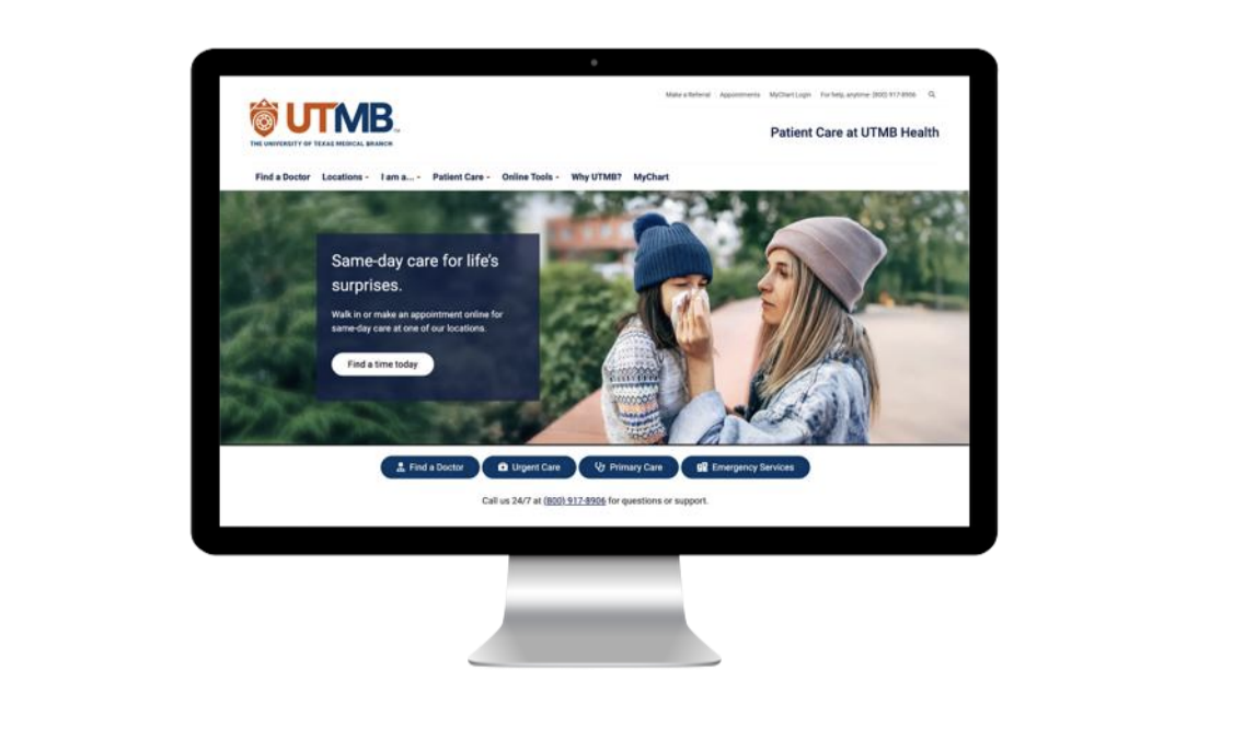 The rollout was fully integrated: a multi-campus launch event; full-page print ads; a :30 commercial; a cinematic brand story video; paid search, social and display campaigns; outdoor billboards changed within 24 hours of launch; and video storytelling featuring caregivers and patients. Simultaneously, we redesigned www.utmb.edu and www.utmbhealth.com, updated digital assets across the enterprise, refreshed collateral and installed high-impact signage. Internal town halls, toolkits and training sessions ensured adoption across the workforce.