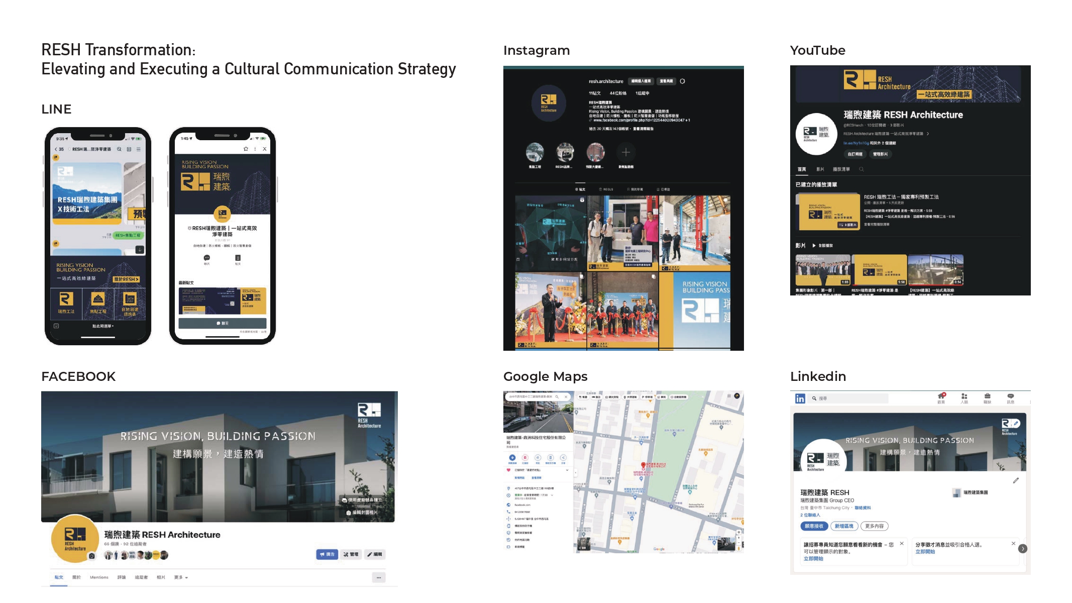 RESH has redefined what it means to be a brand in the built environment. Through a refined CIS system, immersive hotel-style demo centers, and public-facing ESG storytelling, the company shifted from contractor to cultural ecosystem leader—translating sustainability into a shared value proposition.