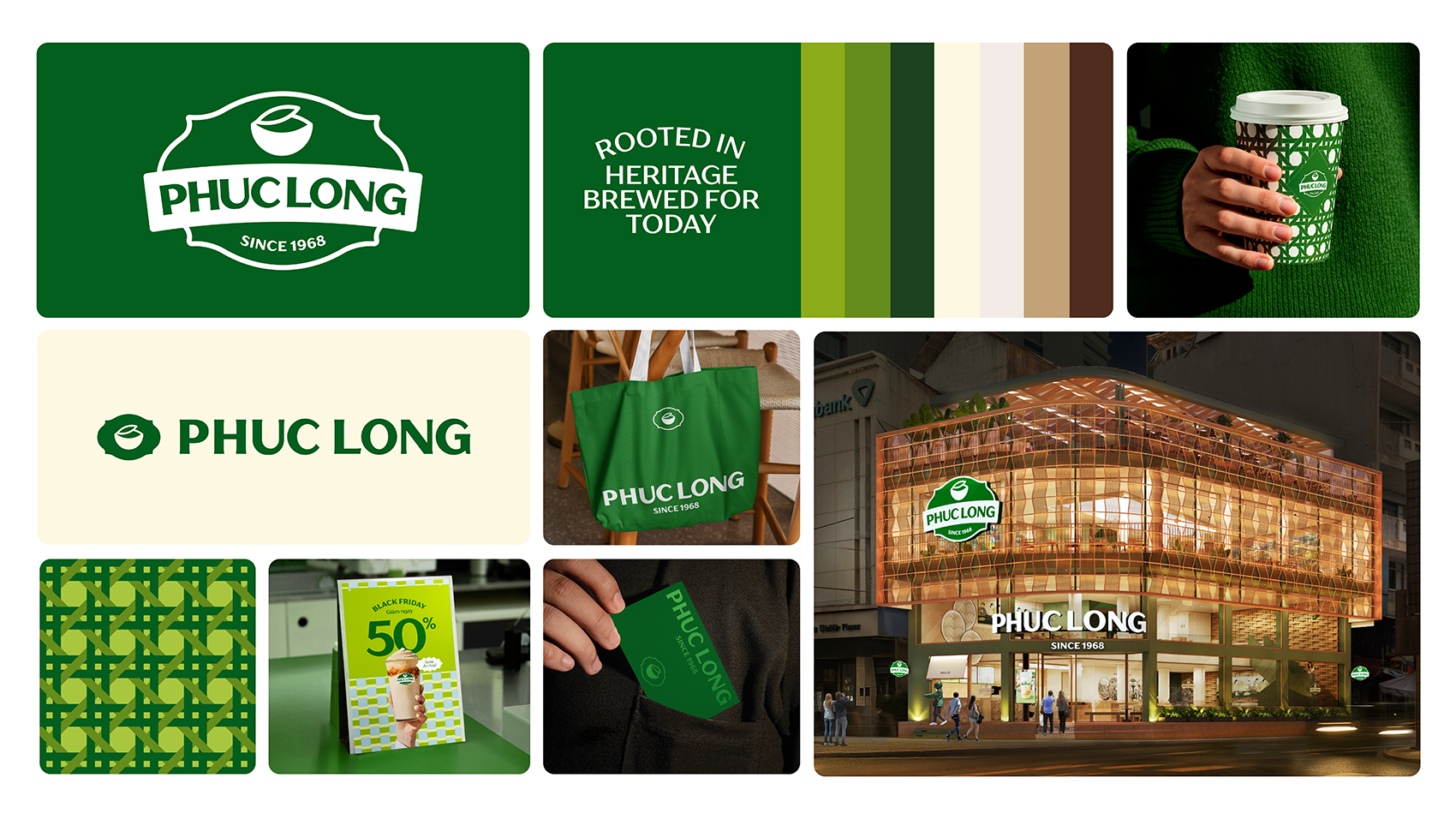 This one-of-a-kind philosophy positions Phuc Long distinctively among F&B chains, transforming the brand into a bridge bringing people closer to things they cherish: themselves, their roots (heritage, culture, generations, etc.), and others (people, communities, etc.). Together with Pure Connections, Heritage and Innovation form the three new brand values of Phuc Long’s positioning, the backbone of the refreshed identity system.